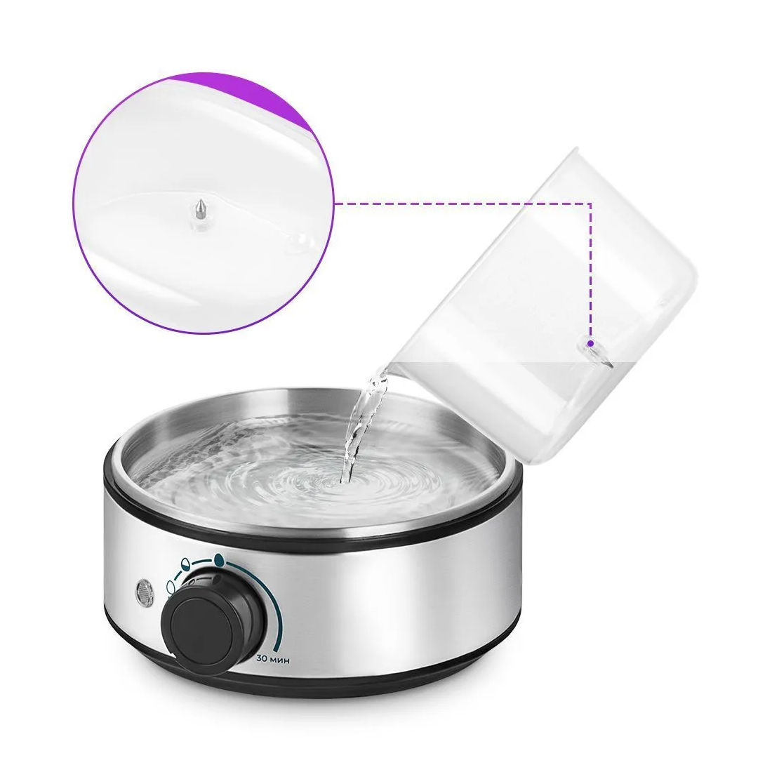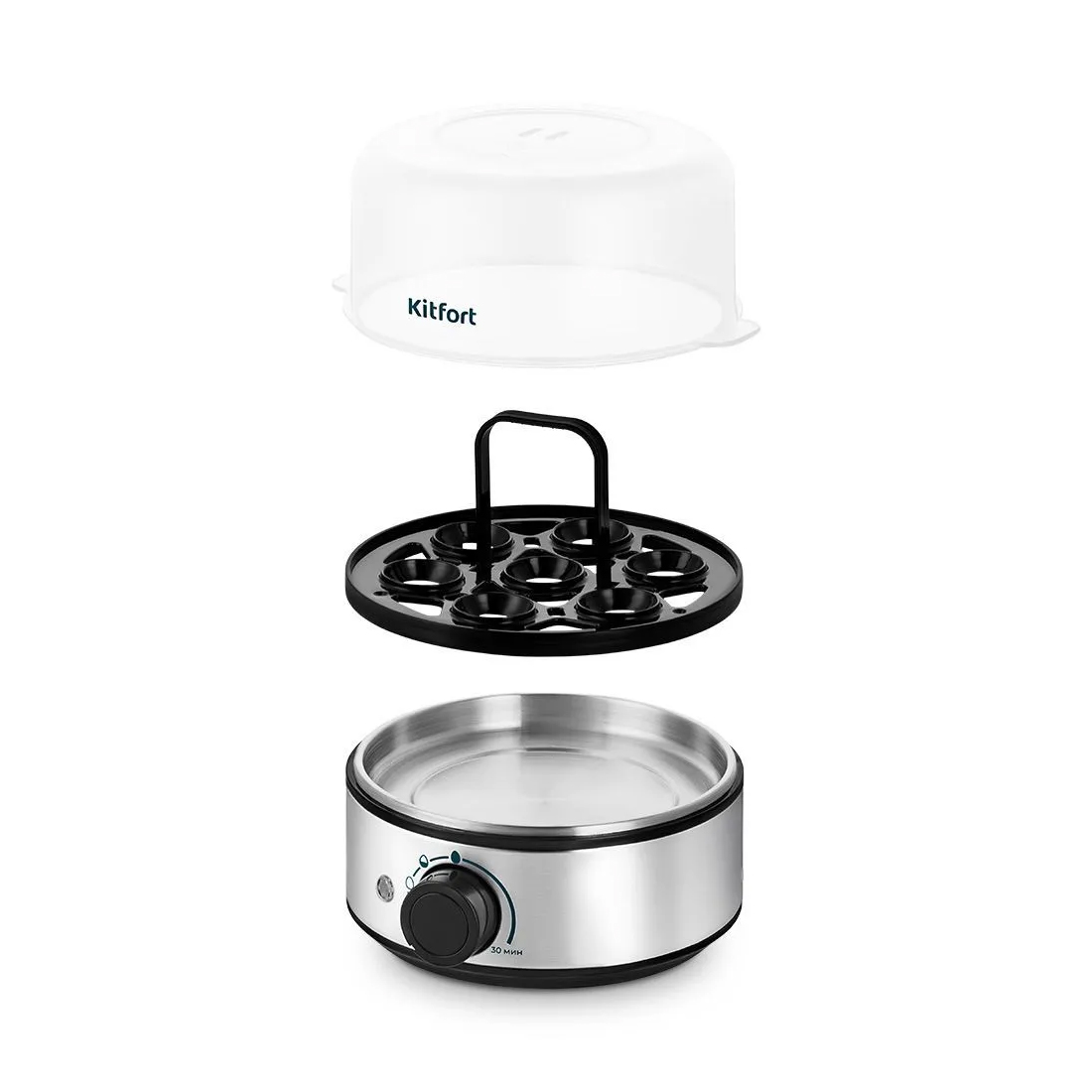 Яйцеварка, Kitfort, КТ-9802, Вмещаемость 7 яиц, 3 режима, Объем резервуара для воды 200 мл, Мощность 400 Вт, Длина шнура 7м, Стальной/Черный