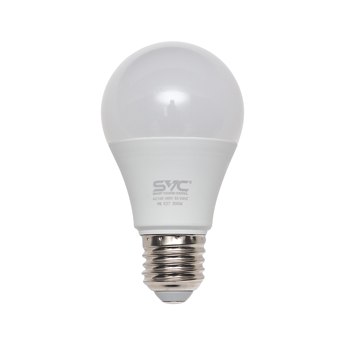 Эл. лампа светодиодная, SVC, LED A60-9W-E27-3000K, Мощность 9Вт, Тип колбы A60, Цвет. Температура 3000K, Цоколь E27, Тёплый