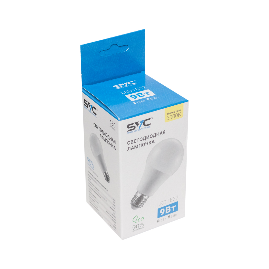 Эл. лампа светодиодная SVC LED A60-9W-E27-3000K, Тёплый