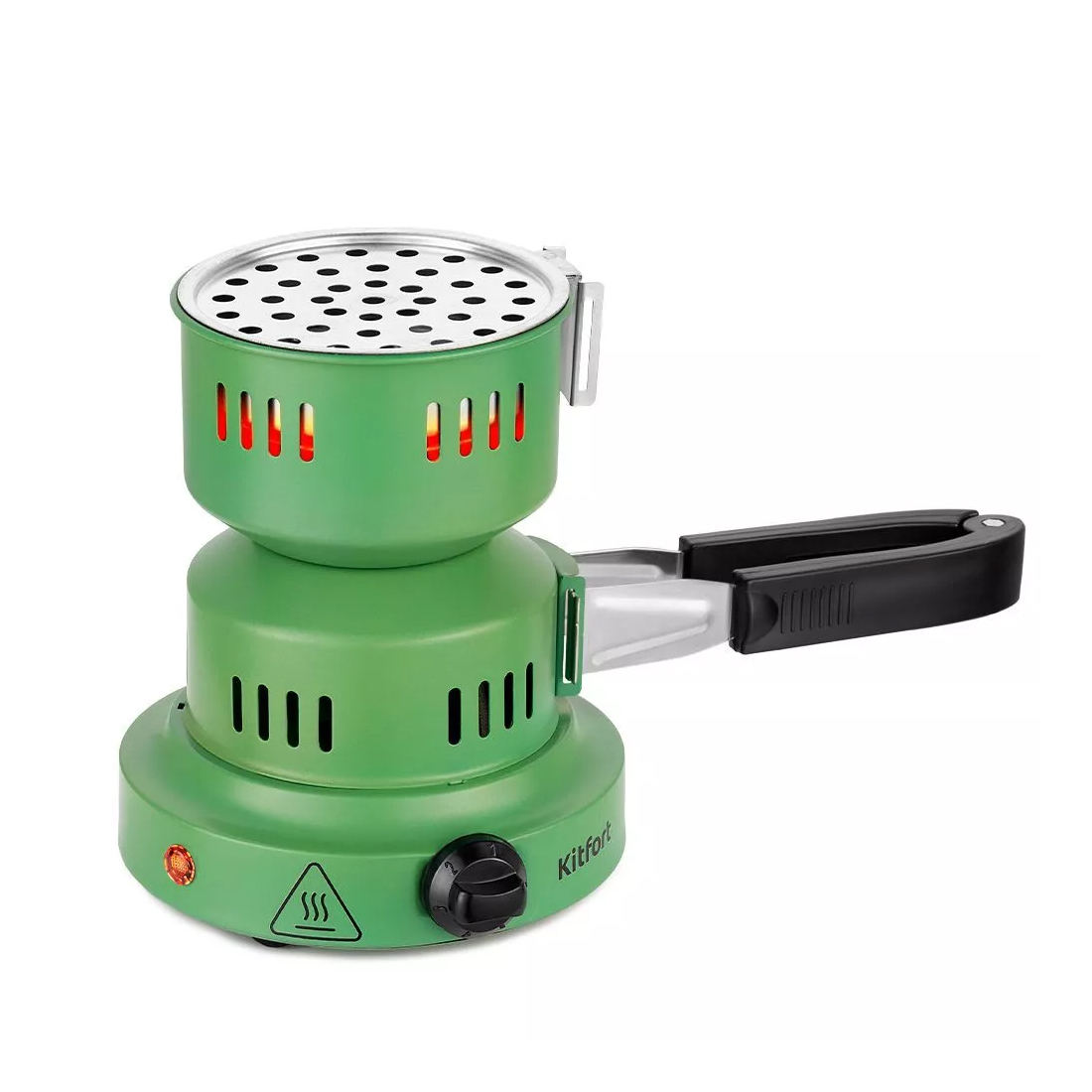 Электрическая плита для розжига углей для кальяна, Kitfort, КТ-168, 1 конфорка, Поворотный механизм, Длина шнура 0.8м, Мощность 650 Вт, Зеленый