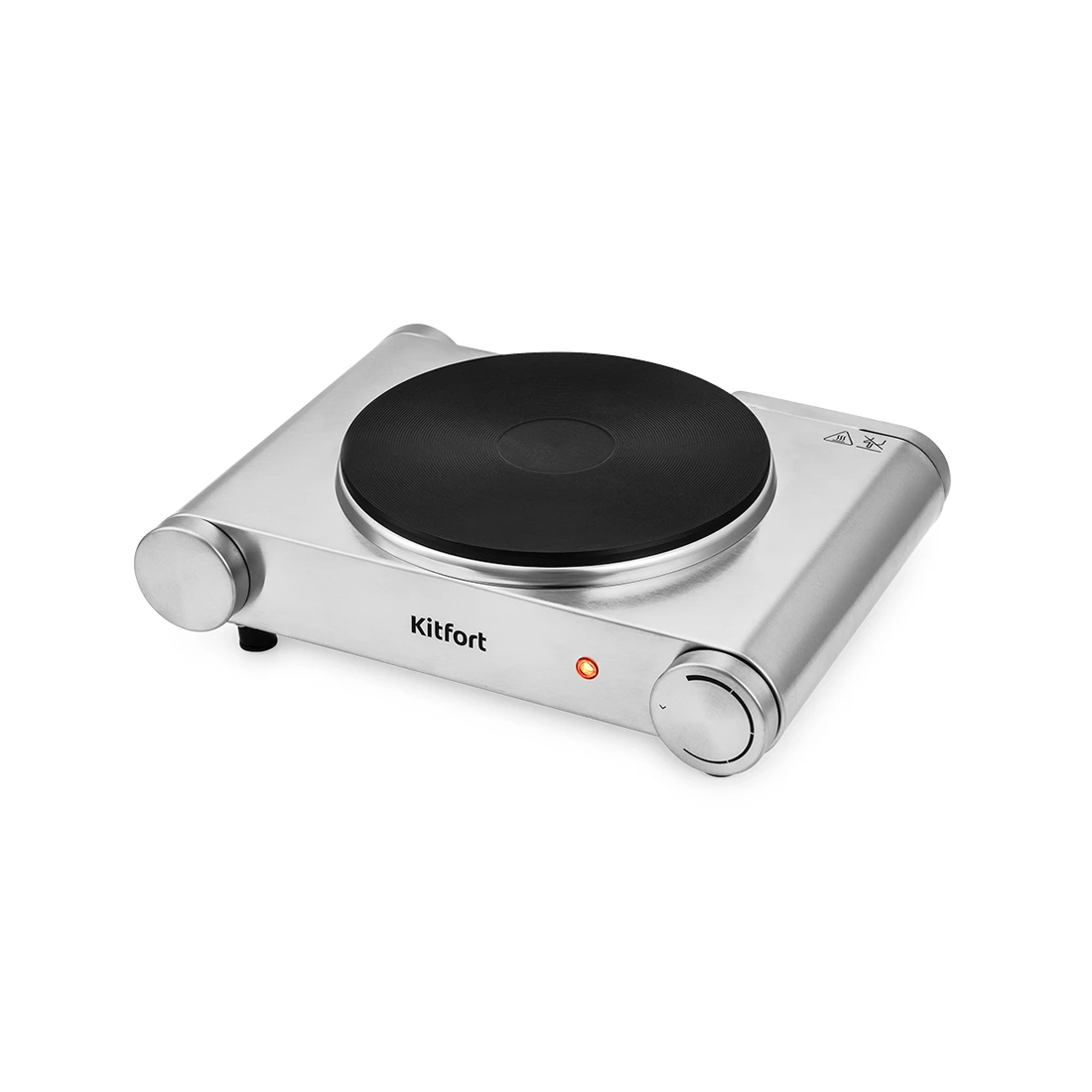Электрическая плита, Kitfort, КТ-151, 1 конфорка, Диаметр конфорки 18.8 см, Поворотный механизм, Мощность 1500 Вт, Длина шнура 1м, Стальной/Черный