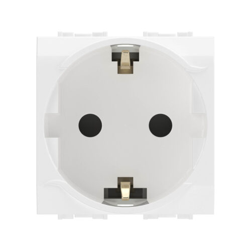 Электрическая розетка с заземлением DKC 76482B со шторками белая, 2мод.