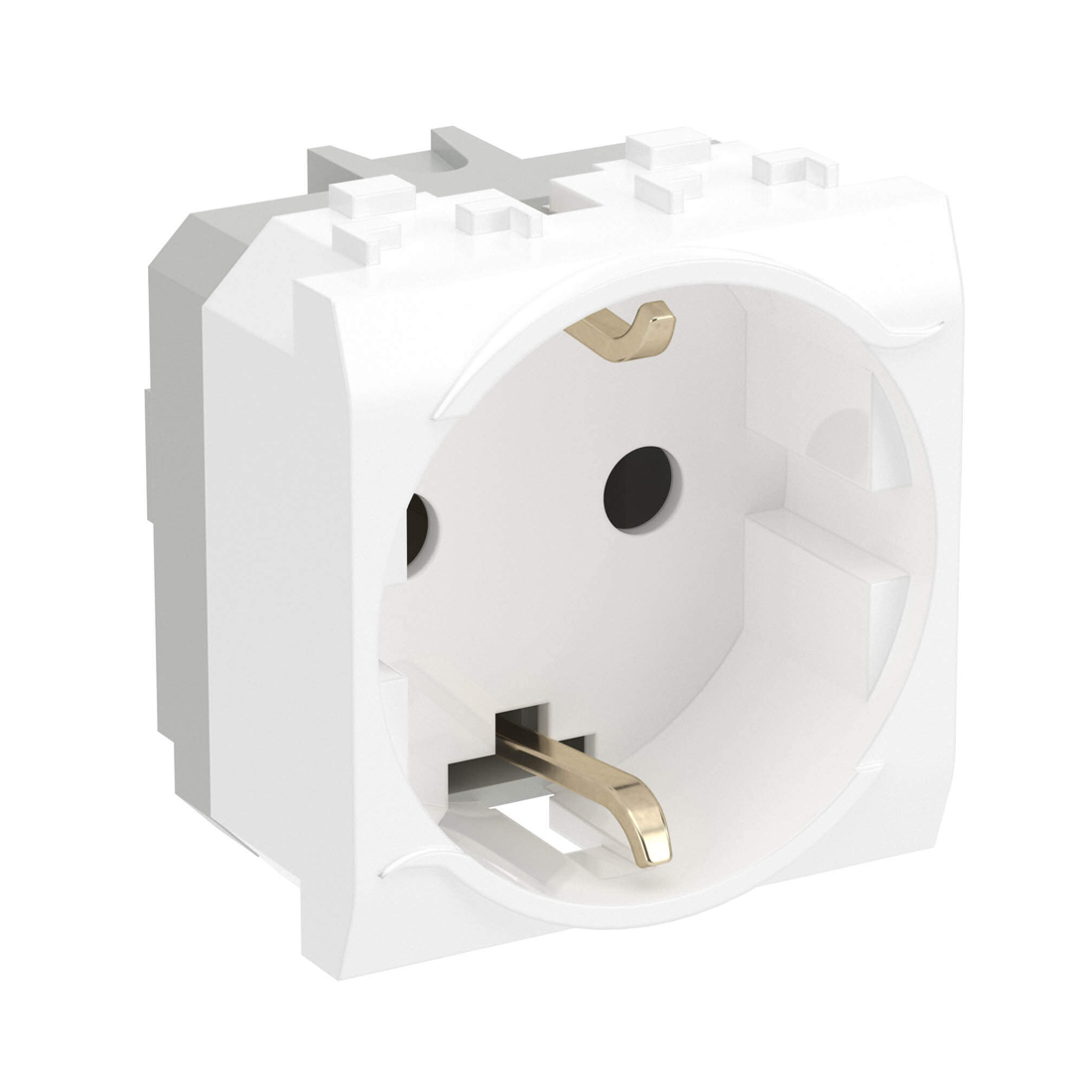 Электрическая розетка с заземлением, DKC, 76482B, со шторками, белая, 2мод.