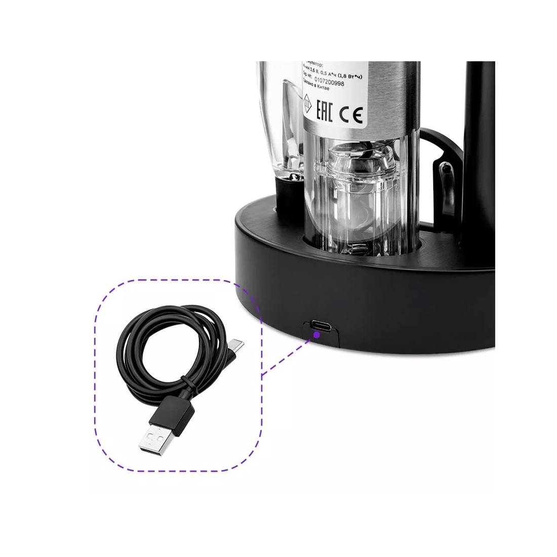 Электрический штопор «3 в 1», Kitfort, КТ-4041, 30 циклов работы, Уровень шума 75 дБ, Время зарядки аккумулятора 10 ч, Мощность 25 Вт, Черный/стальной