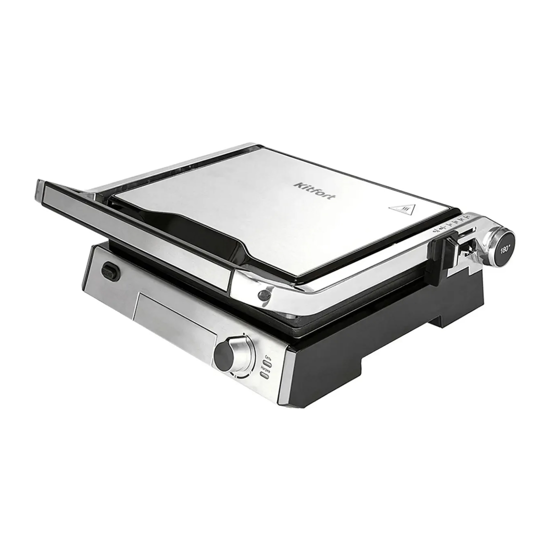 Электрогриль, Kitfort, КТ-1602, Мощность 2000 Вт, Антипригарное покрытие, Съемные пластины, Температура нагрева 90-230°С, мкость поддона 200 мл, Длина шнура 0.9м, Стальной/Черный