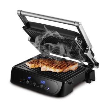 Электрогриль, Kitfort, КТ-3697, Защита от поражения электрическим током, Автоматическое отключение, Открытие на 180° / положение барбекю, Мощность 2000 Вт ,Цвет серебристый