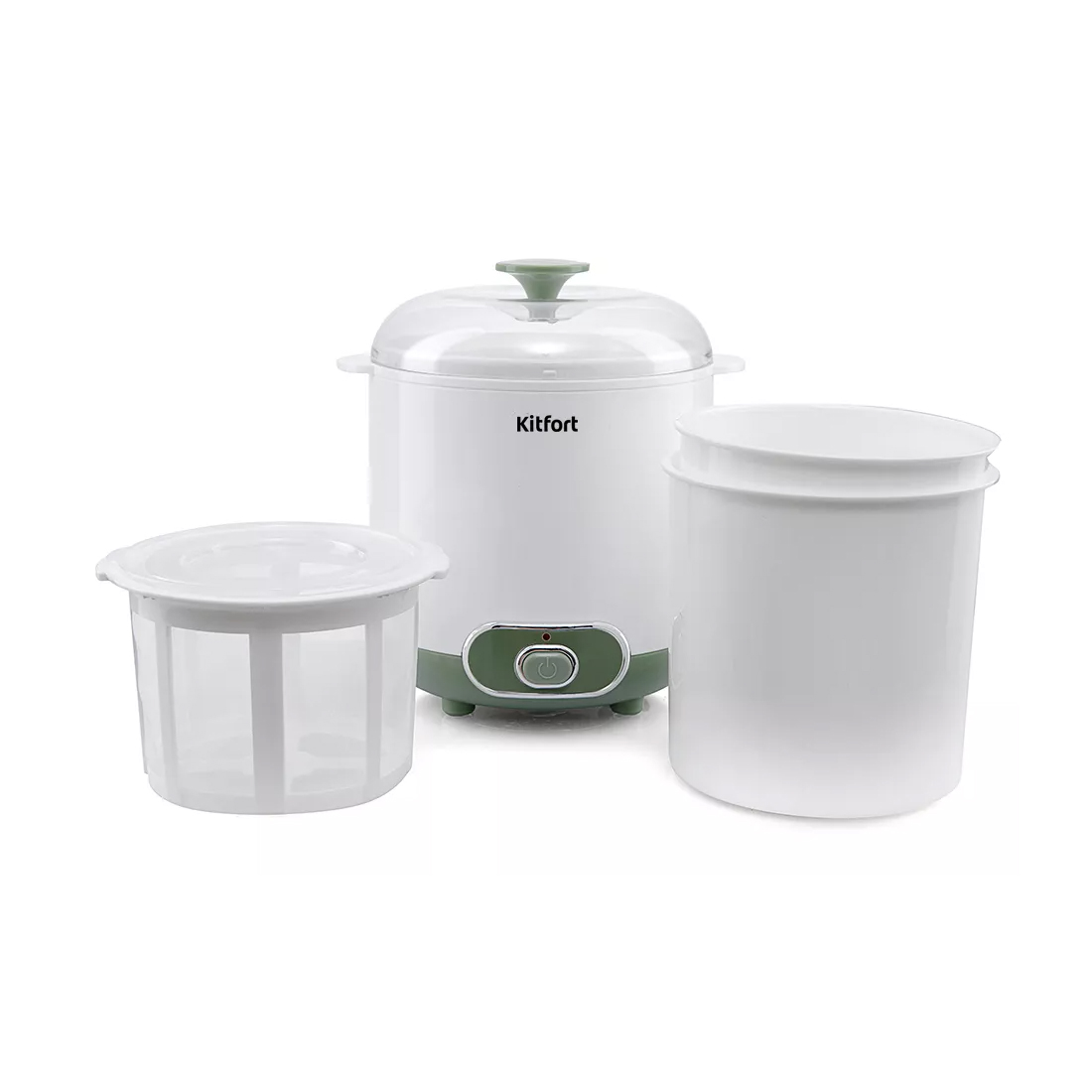 Йогуртница, Kitfort, КТ-2005, Мощность 20 Вт, Механическое управление, Ёмкость 1.5 л, Время приготовления 6-10 часов, Рабочая температура 42±3°С, Белый, Зеленый