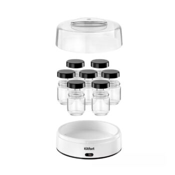 Йогуртница, Kitfort, КТ-6097, Мощность 15 Вт, Общий объем 1.4 л, Объем каждой емкости 200 мл, Количество емкостей 7 шт, Материал емкостей стекло , Цвет черный/белый