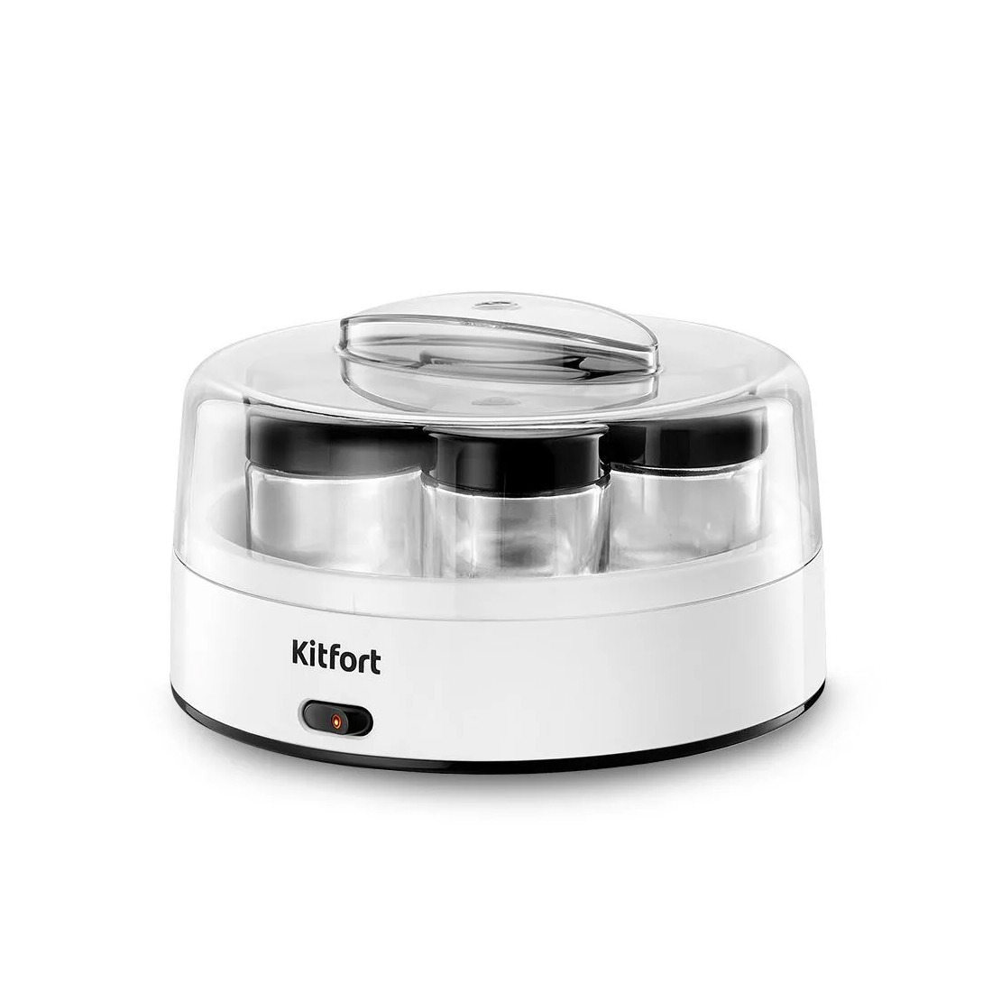 Йогуртница, Kitfort, КТ-6097, Мощность 15 Вт, Общий объем 1.4 л, Объем каждой емкости 200 мл, Количество емкостей 7 шт, Материал емкостей стекло , Цвет черный/белый