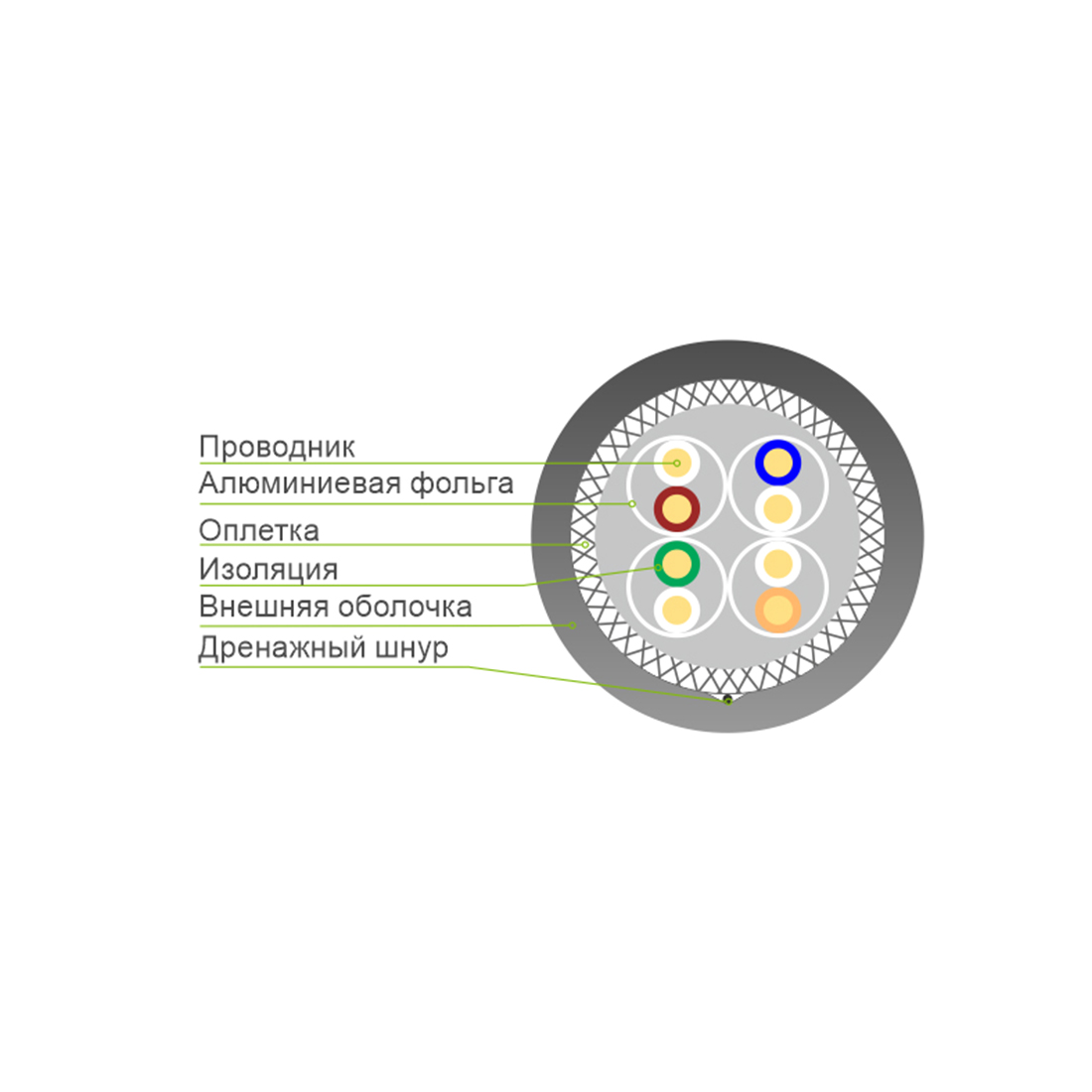Кабель сетевой, SHIP, D176A-P, Cat.6A, S-FTP, 30В, 4x2x1/0.596мм, PE, 305 м в катушке (Двойной экран, Для наружных работ)
