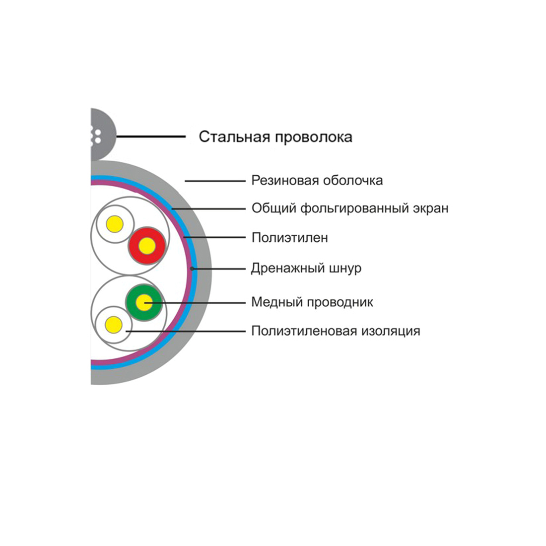 Кабель сетевой самонесущий, SHIP, D226-P, Cat.5e, FTP, 30В, 4x2x1/0.50мм, РЕ, 305 м в катушке, (Для внешней прокладки со стальной проволокой)