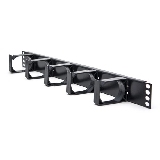 Кабельный органайзер, чёрный 1U. Имеет металлическую основу и 5 пластиковых колец для удерживания кроссовых шнуров, улучшая тем самым эстетику распределительного пункта. Нет необходимости применять дополнительные монтажные инструменты. Стандарт 19 дюймов. Облегчает конфигурирование и внесение изменений в системе.