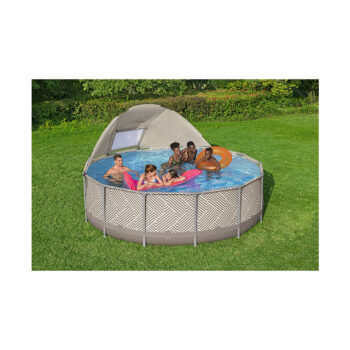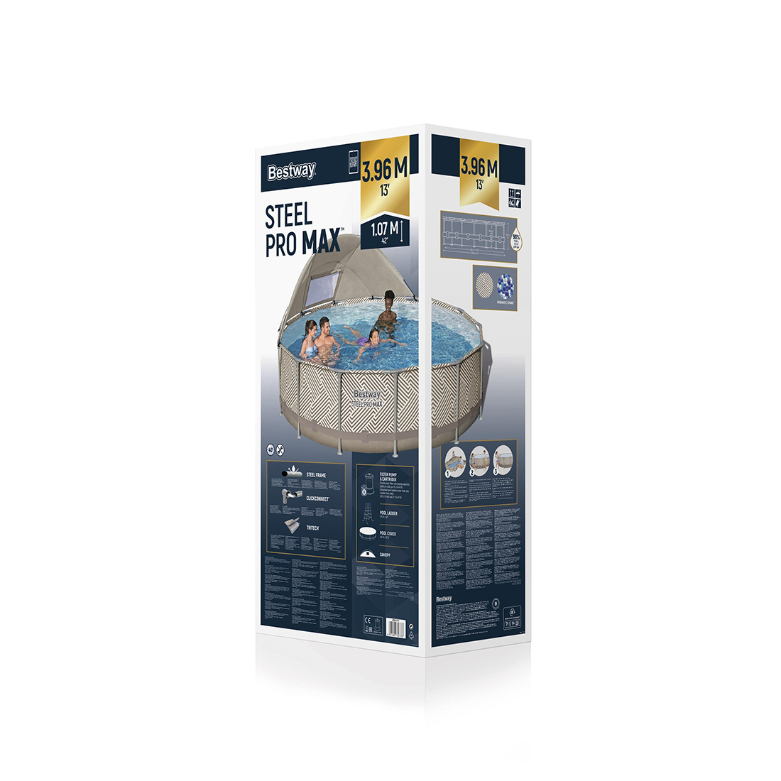 Каркасный бассейн Steel Pro MAX 396 х 107 см, BESTWAY, 561FY, Винил, 11133 л., Стальной каркас, С навесом, Ф-насос 58383 (2006л/ч), Лестница 58335, Тент 58292, Текстильный принт, Цветная коробка