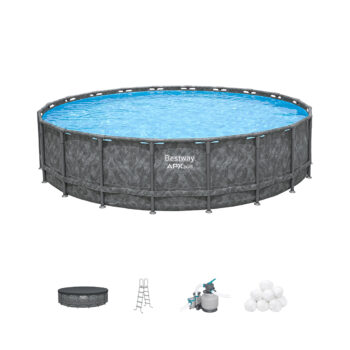 Каркасный бассейн APX 365 671 х 132 см, BESTWAY, 561JZ, Винил, 40377 л., Стальной каркас, Ф-насос 58499 (8327л/ч) c полисферами, Тент, Лестница 58332, Темно-серый, Цветная коробка