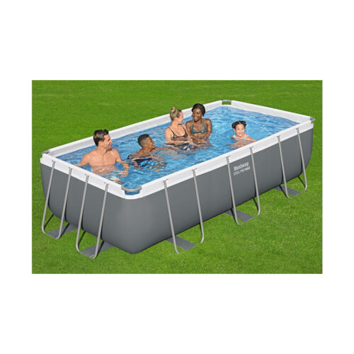 Каркасный бассейн Steel Pro MAX Rectangular 404 х 201 х 100 см, BESTWAY, 56441, Винил, 6478 л., Стальной каркас, Ф-насос 58383 (2006л/ч), Лестница 58335, Серый, Цветная коробка