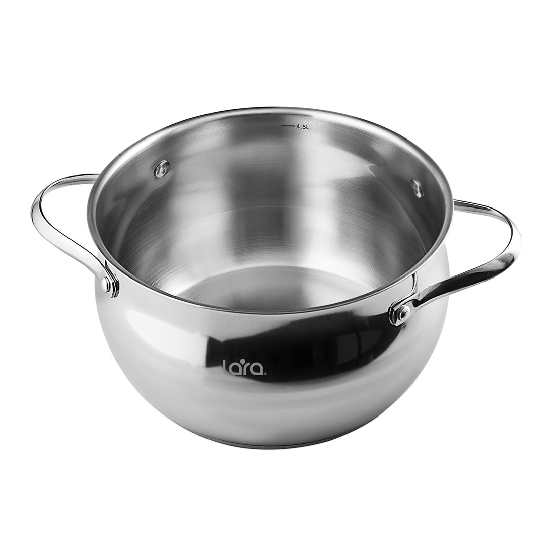 Кастрюля, LARA, APPLE LR02-31, Диаметр 16 см,Высота 10 см, Объем 2.1л, Нержавеющая сталь/Стекло, Для всех типов плит, Мойка ручная/в посудомоечной машине, Стальной