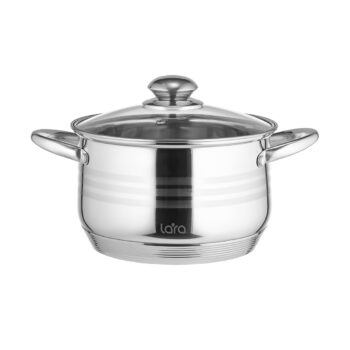 Кастрюля, LARA, SONATA LR02-581, Диаметр 18 см, Высота 11.5 см, Объем 2.9л, Нержавеющая сталь/Стекло, Для всех типов плит, Мойка ручная/в посудомоечной машине, Стальной