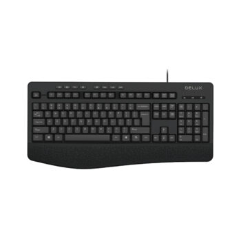 Клавиатура, Delux, DLK-6060UB, USB, Кол-во стандартных клавиш 104, 8 мультимедиа-клавиш, Размер: 446*211*24 мм., Длина кабеля 1,6 метра, Защита от случайного пролива воды/кофе, Чёрный