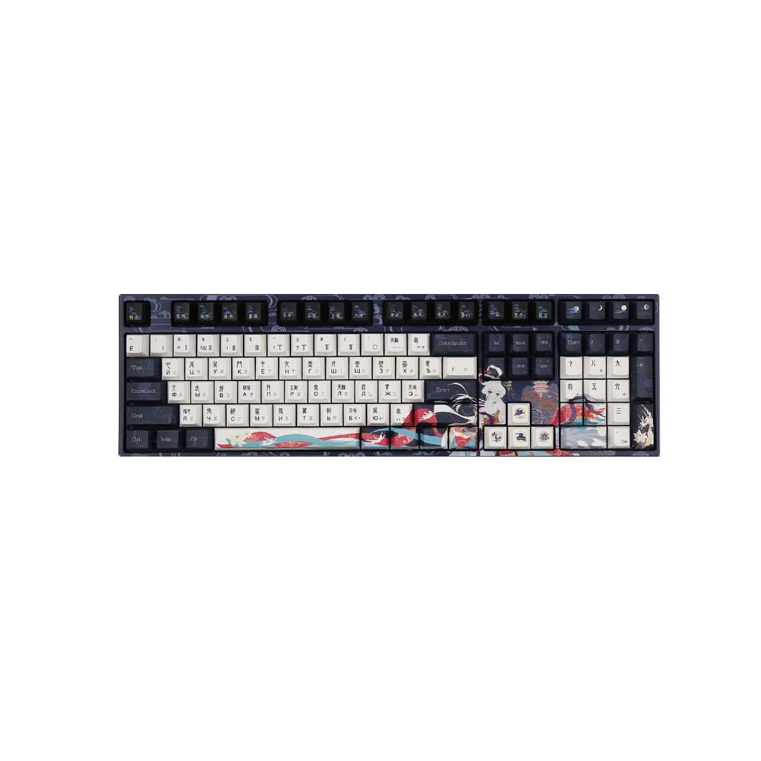 Клавиатура, Varmilo, Chang’e, VPT108, A70A054D5A5A06A043, Cherry MX Silent Red, 108 клавиш, Механическая, Подсветка — RGB, Hot swap — Да, Проводная/Bluetooth/2.4G, Type-C, 502*215*65мм, Англ/Рус, Голубой