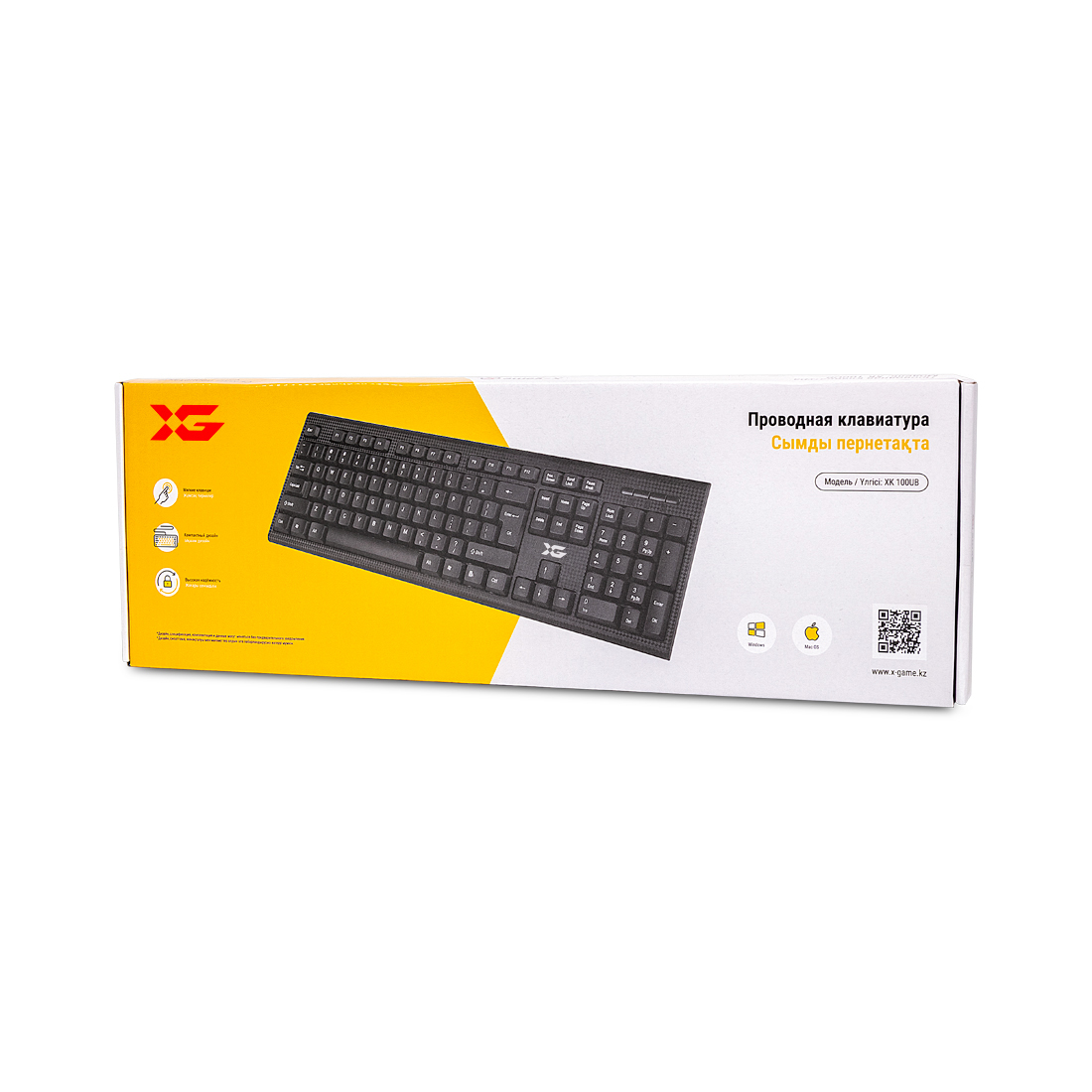 Клавиатура, XG, XK-100UB, Ультратонкая, USB, Кол-во стандартных клавиш 104, Анг/Рус/Каз, Чёрный