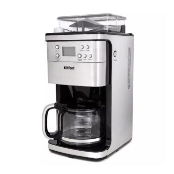 Кофемашина, Kitfort, КТ-705, Капельная, Объем 1.5л, Встроенная кофемолка, Регулятор помола, Отложенный старт, Противокапельная система, Мощность 1000 Вт, Длина шнура 0.98м, Стальной/Чёрный