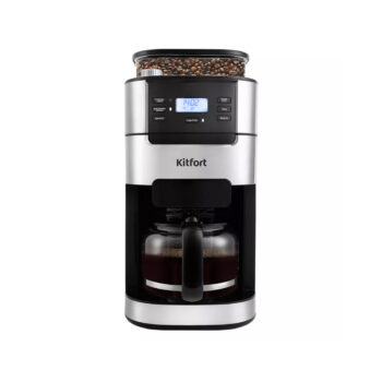 Кофемашина, Kitfort, КТ-720, Капельная, Объем кофейника 1.5 л, Объем резервуара для зёрен 200 г, Встроенная кофемолка, Используемый кофе зерновой/молотый, Регулятор степени помола, Отложенный старт, Кнопочное управление, Мощность 1050 Вт, Длина шнура 0.8м, Черный/Стальной