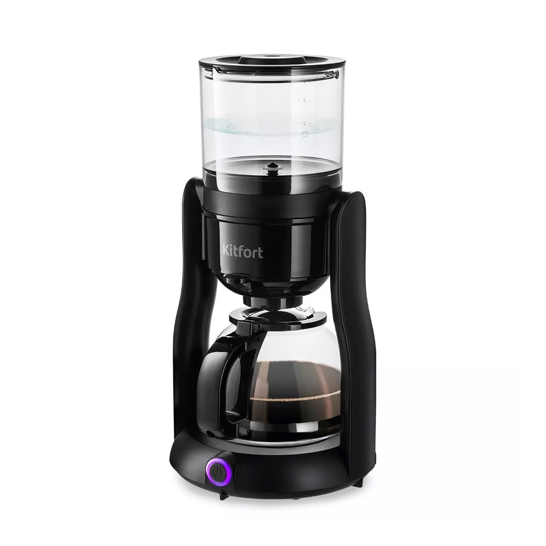 Кофеварка капельная, Kitfort, КТ-7136, Мощность 680 Вт, Объем резервуара для воды 480 мл, Съемный контейнер для воды есть, Градуировка колбы нет, Используемый кофе молотый, Цвет черный