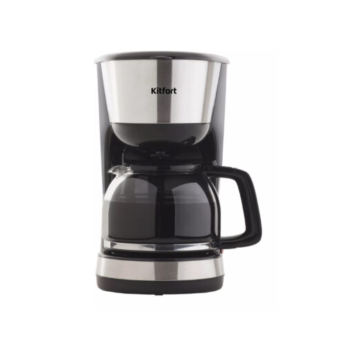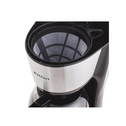 Кофеварка капельная, Kitfort, КТ-715, Мощность 1000 Вт, Стекло, Пластик, Ёмкость резервуара 1.2л, Автоотключение, Черный/Стальной