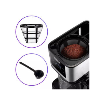 Кофеварка капельная, Kitfort, КТ-7217, Объем резервуара для воды 1250 мл, Объем резервуара для кофе 1250 мл, Градуировка колбы, Материал колбы стекло, Используемый кофе молотый, Фильтр нейлоновый, Тип управления сенсорное , Цвет черный