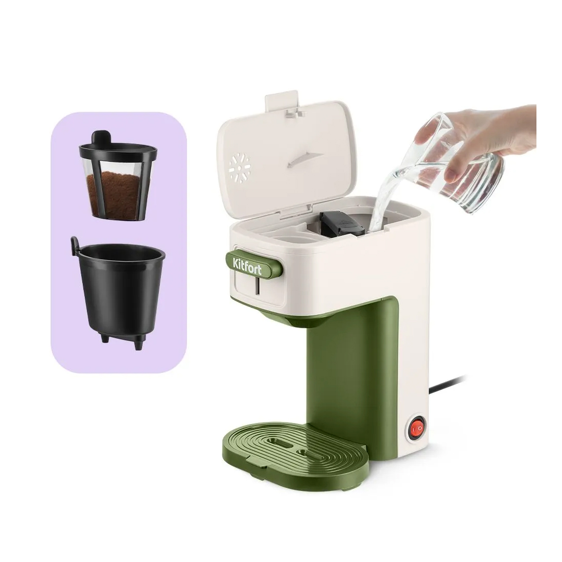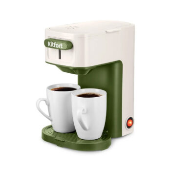 Кофеварка капельная, Kitfort, КТ-7618, Объем кружки 125 мл, Объем резервуара для воды 250 мл, Нейлоновый многоразовый фильтр, Мощность 500 Вт, Длина шнура 0.7м, Белый/Зеленый