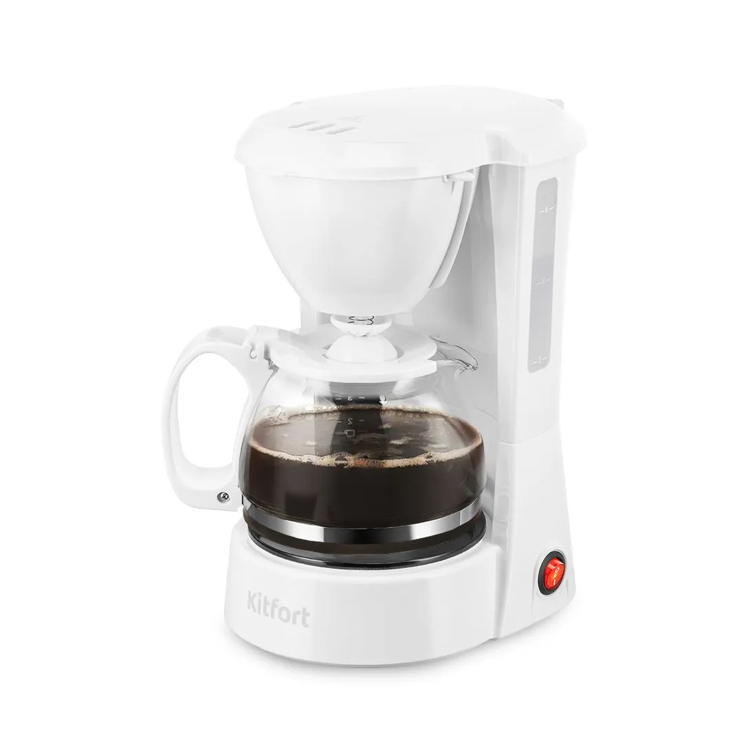 Кофеварка, Kitfort, КТ-7327, Мощность 550–650 Вт, Ёмкость резервуара для воды 0,75 л, Ёмкость кофейника 0,75 л, Материал сетки фильтра нейлон , Цвет белый