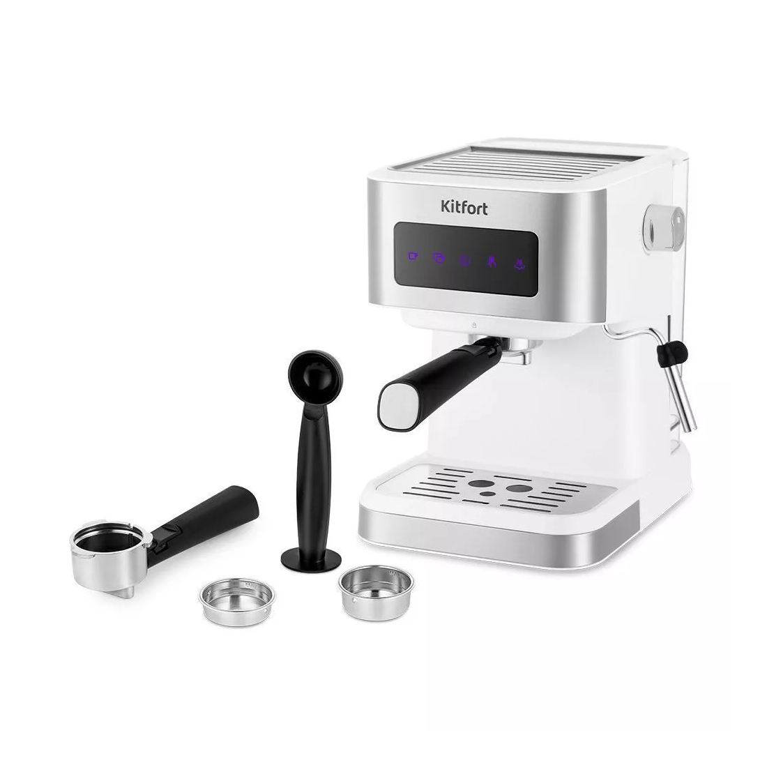 Кофеварка рожковая, Kitfort, КТ-7139, Объем резервуара для воды 1.5 л, Мощность 1050 Вт, Тип нагревателя бойлер, Давление 15 Бар, Цвет белый