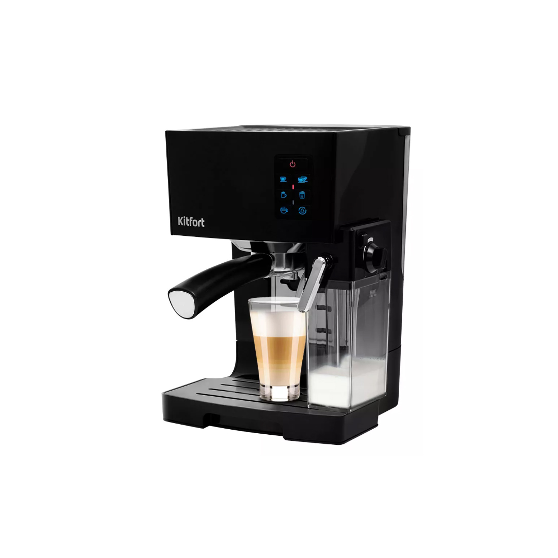 Кофеварка рожковая, Kitfort, КТ-743, Мощность 1200-1400Вт, Пластик, Ёмкость резервуара 1.4л, Автоотключение, Черный