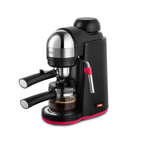 Кофеварка рожковая, Kitfortt, КТ-7444, Давление 3.5 бар, Ручной капучинатор, Температура нагрева 95°C, Объем кофейника 240 мл, Мощность 800 Вт, Длина шнура 0.7м, Черный/Розовый