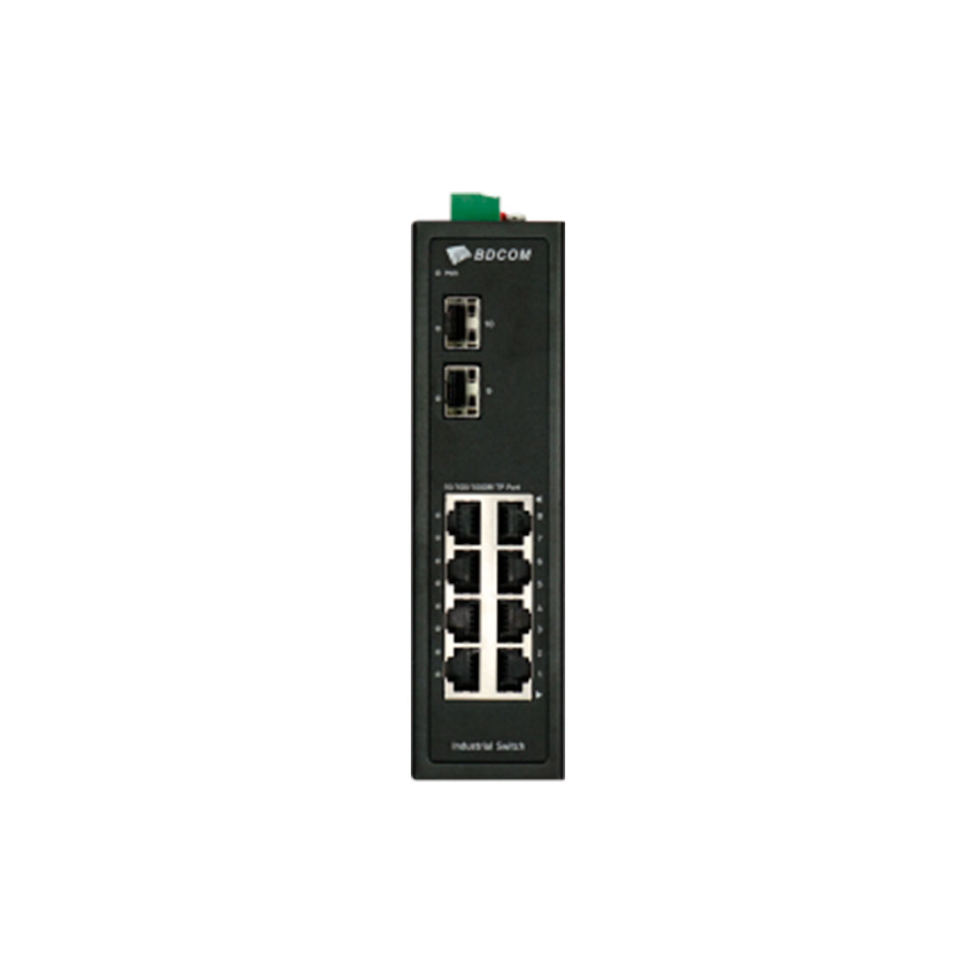 Коммутатор, BDCOM, IES200-LSTW2080, Неуправляемый, 8 портов 10/100/1000М RJ45, 2 порта SFP, DC 12-55В Dual RPS, -40+75°C, DIN-rail, без блока питания