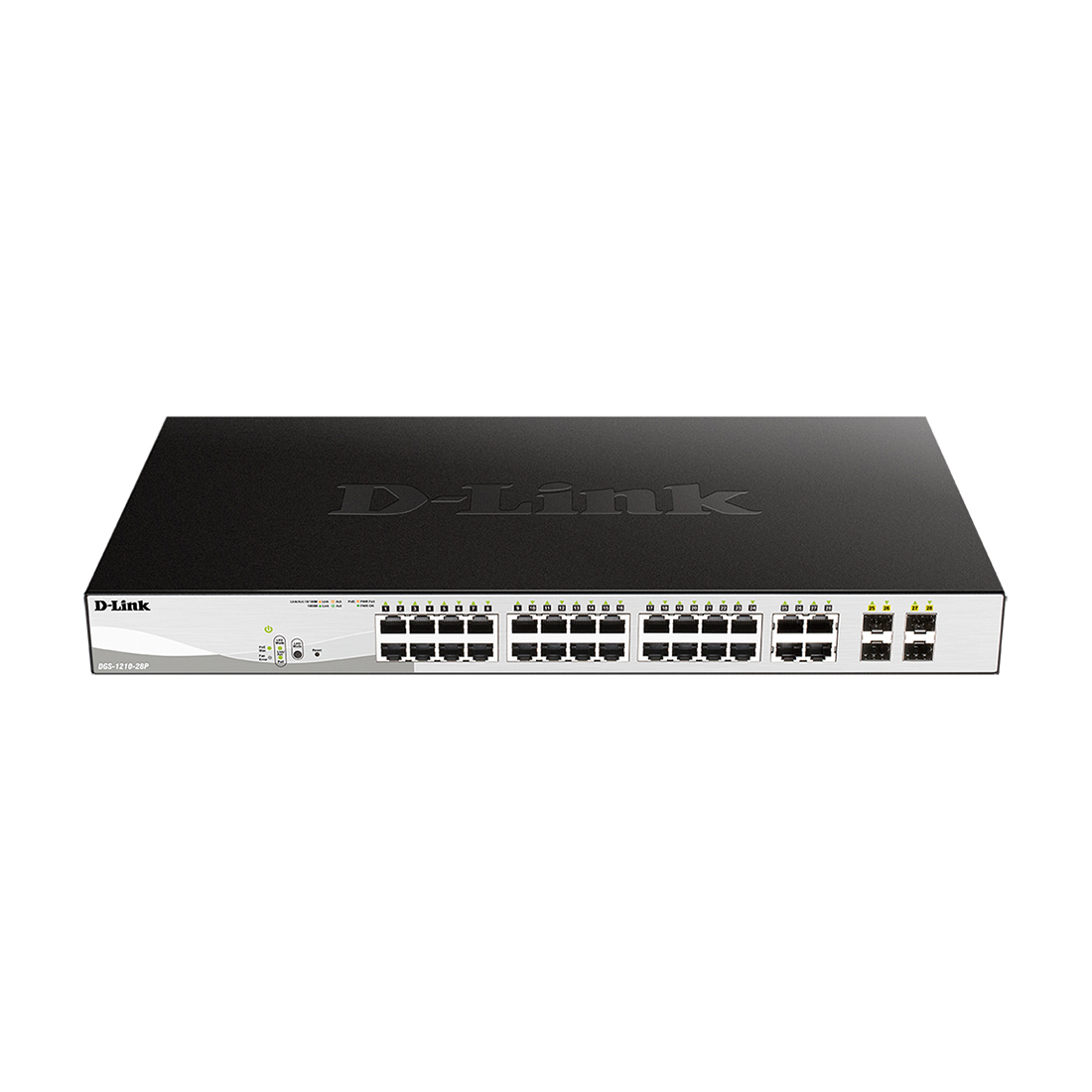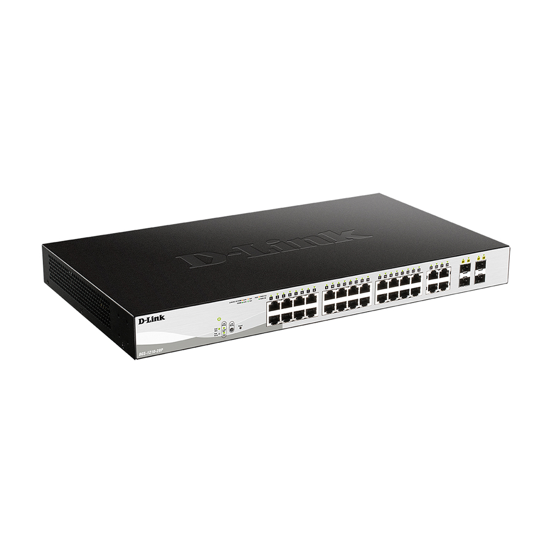 Коммутатор, D-Link, DGS-1210-28P/FL1A, 19-дюймовый стоечный, 24 порта 10/100/1000M RJ45+4 порта SFP, Управляемый, Корпус металл, 1U, PoE (802.3af/802.3at), PoE бюджет 193 Вт