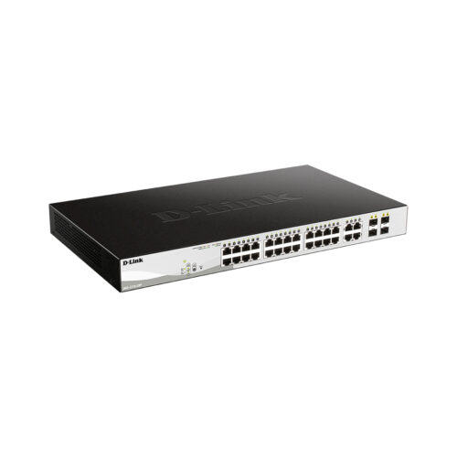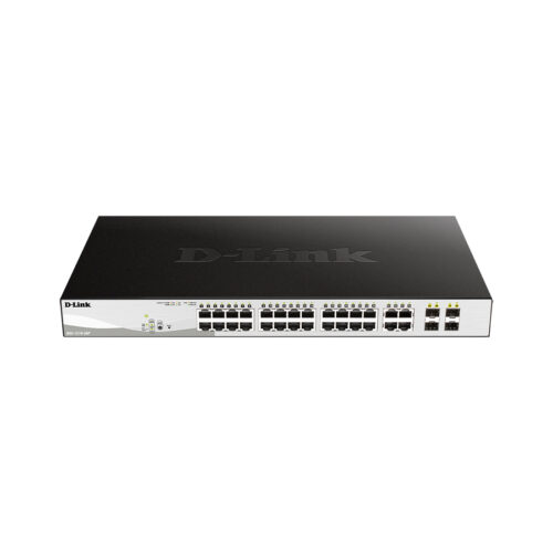 Коммутатор, D-Link, DGS-1210-28P/FL2A, 19-дюймовый стоечный, 24 порта 10/100/1000M RJ45+4 порта SFP, Управляемый, Корпус металл, 1U, PoE (802.3af/802.3at), PoE бюджет 193 Вт