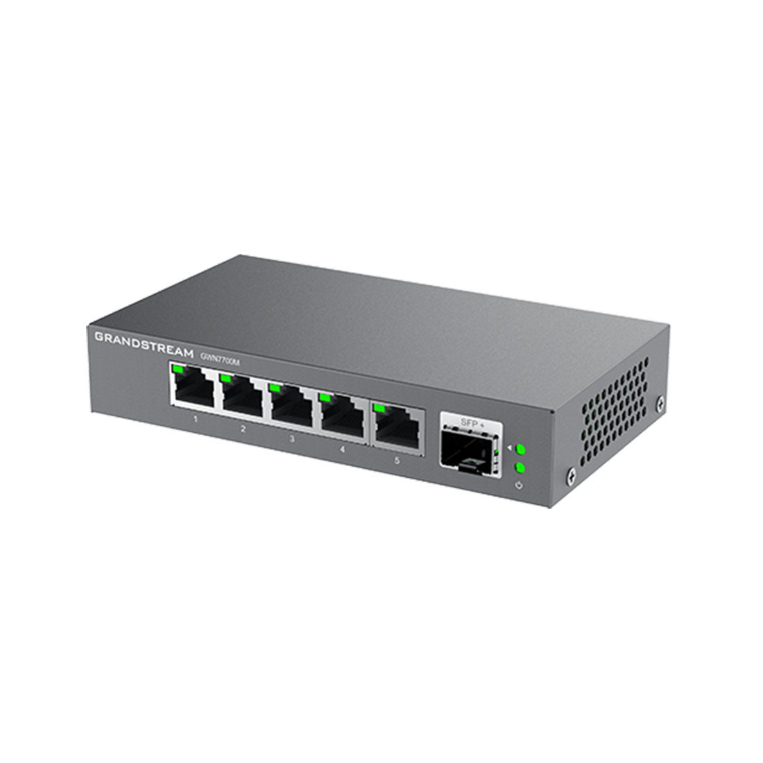 Коммутатор, Grandstream, GWN7700M, неуправляемый мультигигабитный, 5 портов RJ-45 100/1000/2500 Мбит/с, 1 порт SFP+, настольный/настенный, металлический корпус