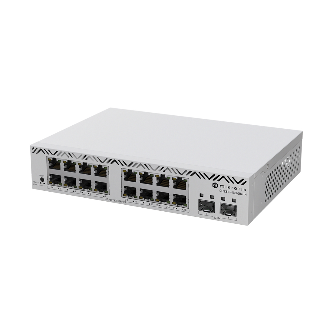 Коммутатор, MikroTik, CSS318-16G-2S+IN, 16xGigabit LAN, 2xSFP+, RouterOS/SwitchOS (dual boot), desktop case, -40°C to 60°C