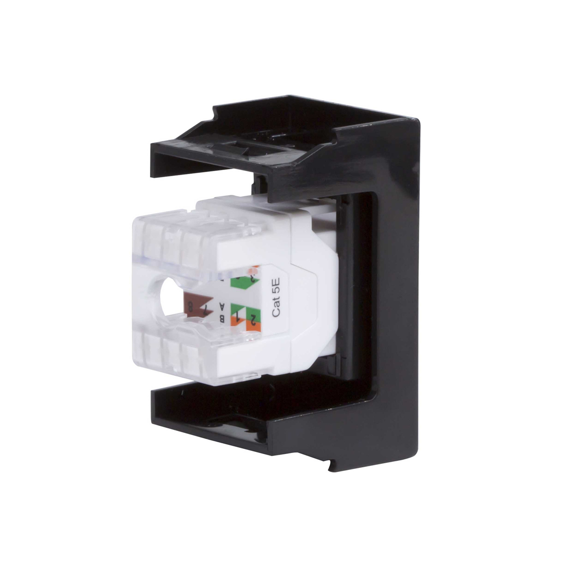 Розетка выполнена в неэкранированном исполнении (UTP), подходит для стандартных сетей категории 5E.