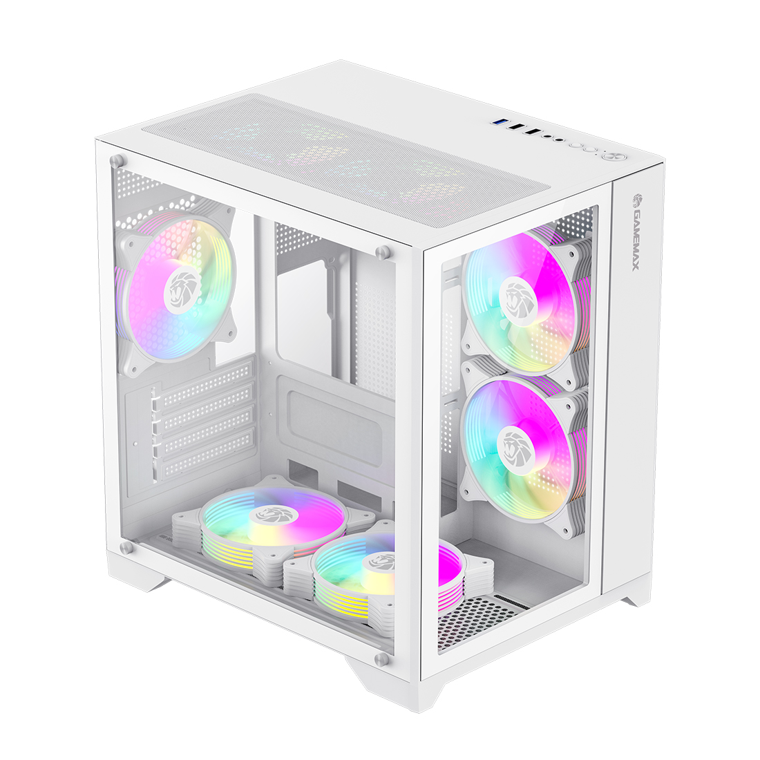 Компьютерный корпус, Gamemax, Infinity Mini WH, 9101-0000R00190, M-ATX, USB 3.0*1/ USB 2.0*2, HD Audio, Кулер ARGB 7*120mm, Высота процессорного кулера 155мм, Длина VGA 330мм, Количество отсеков 1*3,5″ / 2*2,5″, Сталь/Закаленное стекло, 358х275х373мм, Без Б/П, Белый
