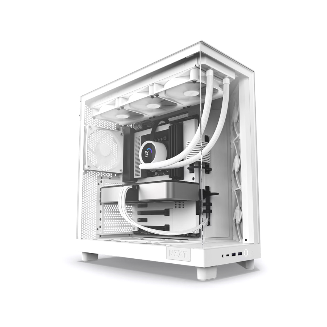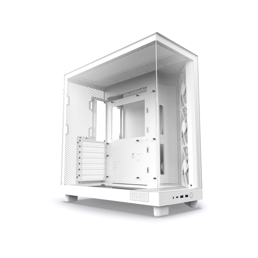 Компьютерный корпус, NZXT, H6 Flow, CC-H61FW-01, Mid-Tower, ATX/M-ATX/M-ITX, USB 3.2 Type-A *1, USB 3.2 Type-C *1, Audio+Mic *1, 3*120мм F120Q fan (Передняя-правая), Высота процессорного кулера 163мм, Длина VGA 365мм, 2*2,5/1*3,5, Сталь/Закаленное стекло, 415*287*435мм, без Б/П, Белый