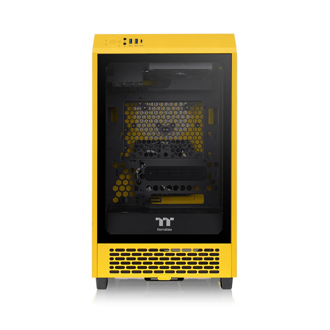 Компьютерный корпус, Thermaltake, The Tower 200 Bumblebee, CA-1X9-00S4WN-00, Mini Tower, Mini-ITX, USB 3.0*2/Type C*1, HD-Audio+Mic, Кулер 2*140 мм, Высота процессорного кулера до 200 мм, Длина VGA до 380 мм, 2*3,5″/2*2,5″, Сталь, 3мм Закаленное стекло*1, 280*300*537мм, Без Б/П, Желтый