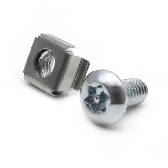 Комплект состоит из винта М6, квадратной накидной гайки с пружинным элементом. Крепёж предназначен для закрепления различного оборудования на 19 дюймовые перфорированные профили.