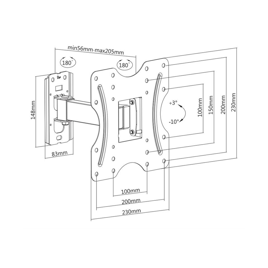 Кронштейн для ТВ и мониторов, Brateck, KLA27-221, Макс. нагрузка — 30 кг, Диагональ экрана от 23″ до 42″, Угол поворота 180°, Угол наклона +/-20°, Чёрный