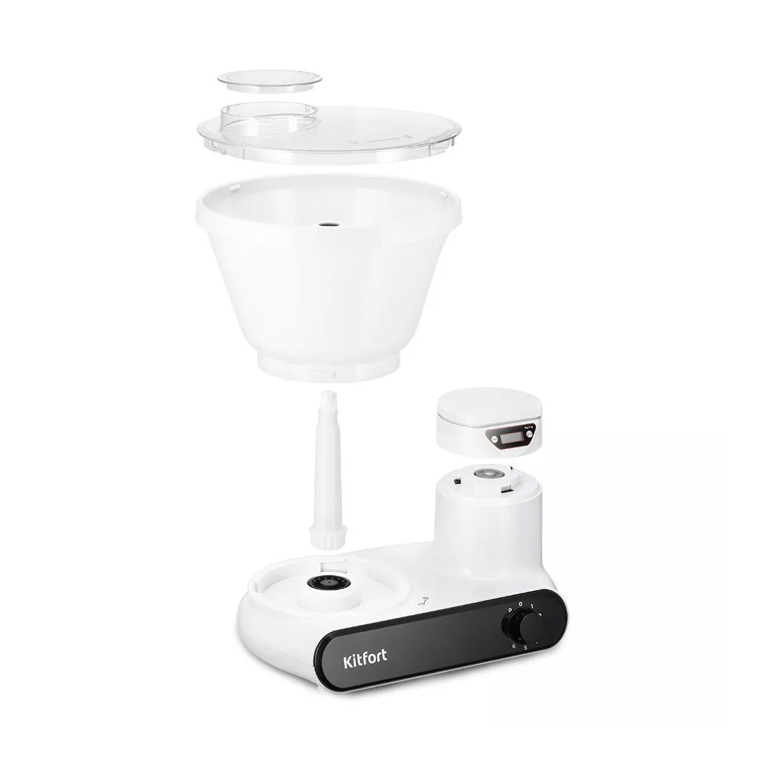 Кухонная машина, Kitfort, КТ-3478, «2 в 1», Объем чаши 5л, 6 скоростей, 2 насадки, Импульсный режим, Уровень шума до 80 дБ, Мощность 1200 Вт, Белый