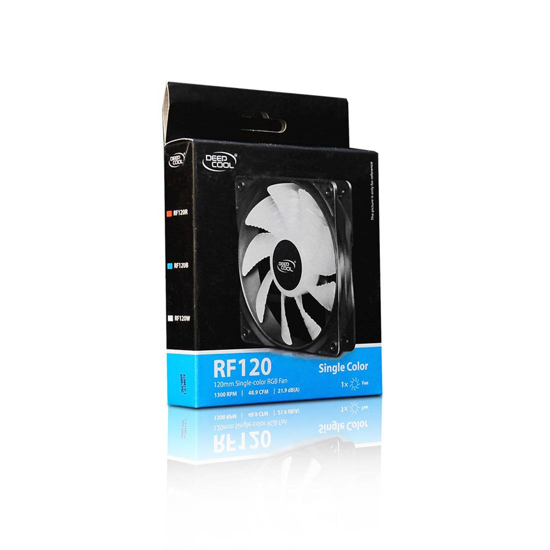 Кулер для компьютерного корпуса, Deepcool, RF 120B, DP-FLED-RF120-BL, 120мм Blue LED, 1300±10%об.мин, 48.9CFM, 21.9dB(A), Molex/3pin, 120х120х25мм, Чёрный