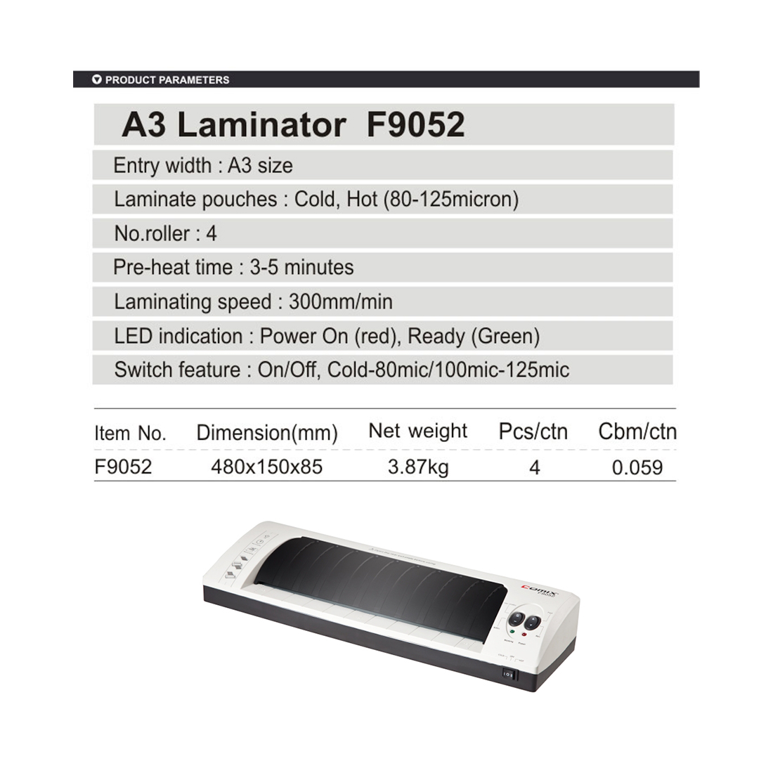 Ламинатор COMIX F9052 А3, 4 вала, 80-125 мкм, 30 см/мин.