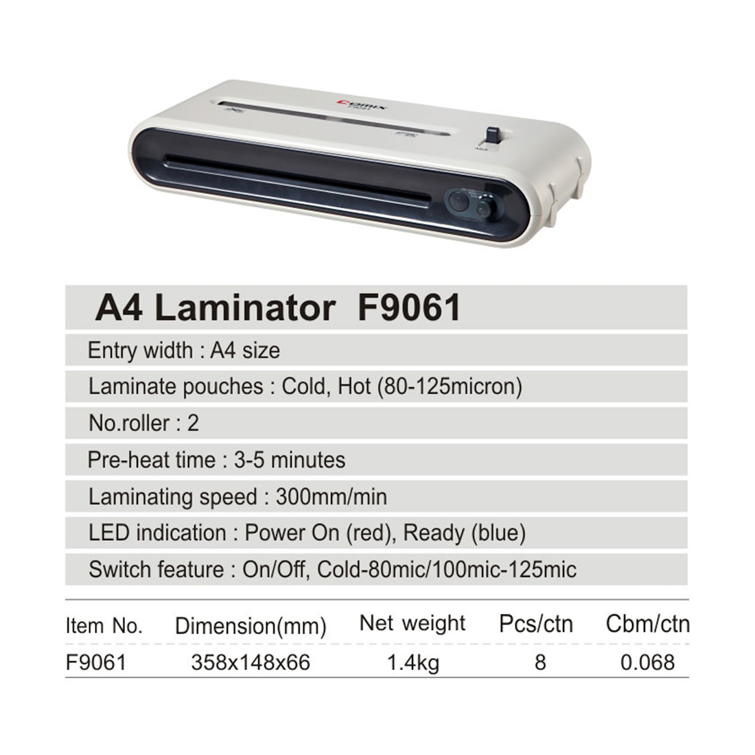 Ламинатор COMIX F9061 А4, 2 вала, 80-125 мкм, 30 см/мин.