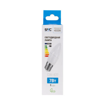 Лампа светодиодная SVC LED C35-7W-E27-4000K Свеча Нейтральный